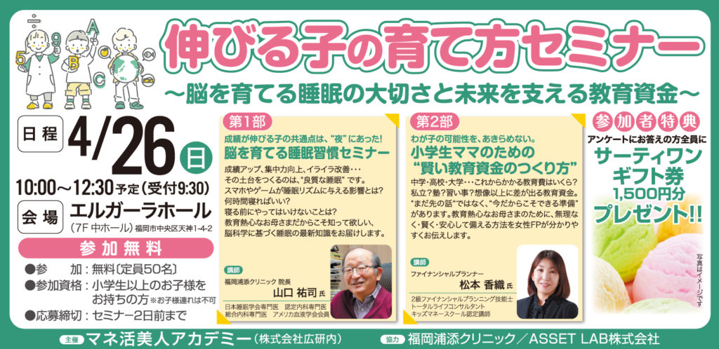 お申し込みはこちら こんな方におすすめ 子どもの睡眠や生活リズムが気になっている 子どもの集中力や成長に睡眠がどう影響するか知りたい これからかかる教育費について不安がある 教育資金の準備をそろそろ考えたい 無理のない教育費の貯め方を知りたい ...