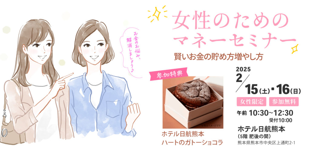 2/15(土)・16(日) 熊本 女性のためのマネーセミナー 賢いお金の貯め方増やし方