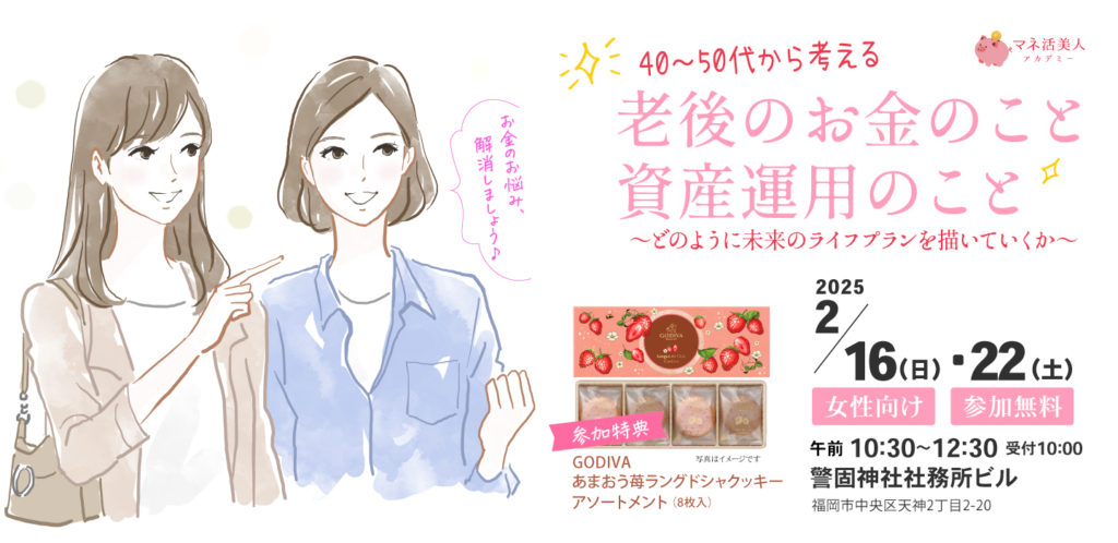 2/16(日)・22(土) 福岡 40~50代から考える 老後のお金のこと 資産運用のこと