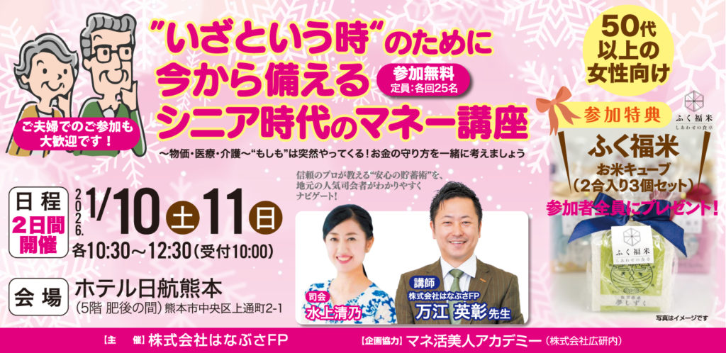 1/10(土)・11(日) 熊本 ”いざという時”のために 今から備える シニア時代のマネー講座