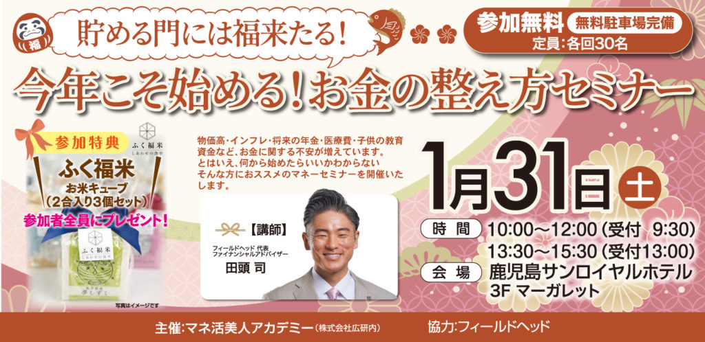 1/31(土) 鹿児島 今年こそ始める!お金の整え方セミナー