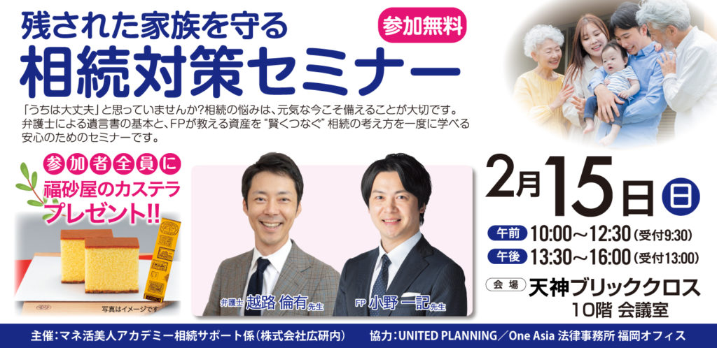 2/15(日) 福岡 残された家族を守る 相続対策セミナー