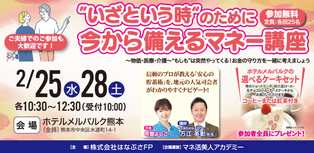 2/25(水)・28(土) 熊本 ”いざという時”のために 今から備えるマネー講座