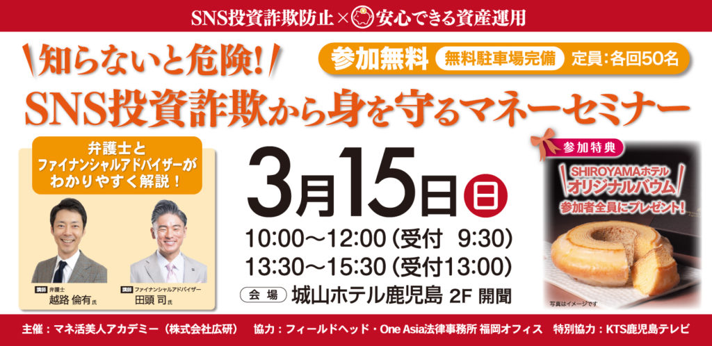 保護中: 3/15(日) 鹿児島 SNS投資詐欺から身を守るマネーセミナー