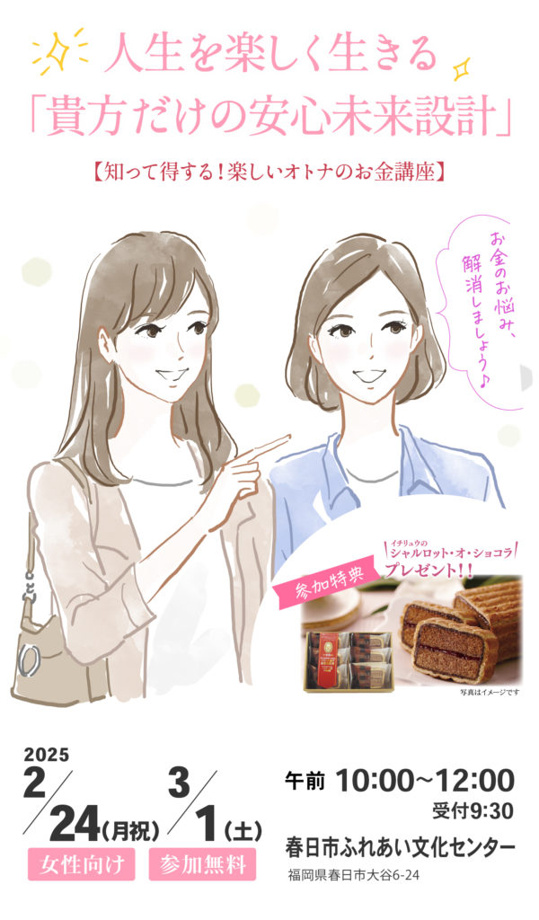 2/24(月祝)・3/1(土) 福岡(春日) 人生を楽しく生きる「貴方だけの安心未来設計」