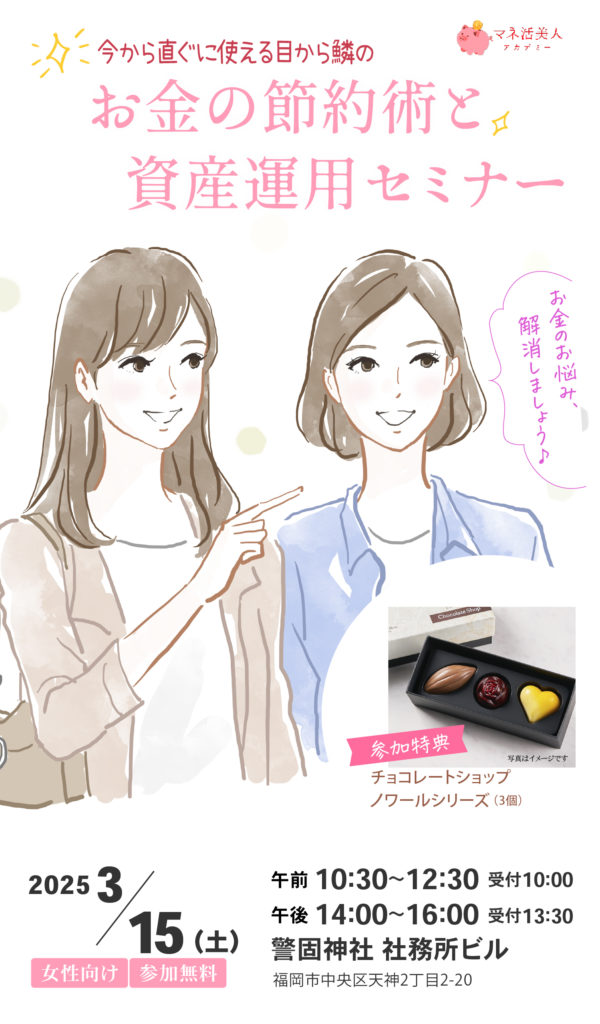 3/15(土) 福岡 今から直ぐに使える目から鱗の お金の節約術と 資産運用セミナー