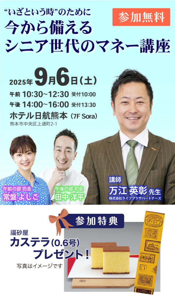 9/6(土) 熊本 “いざという時”のために 今から備えるシニア世代のマネー講座