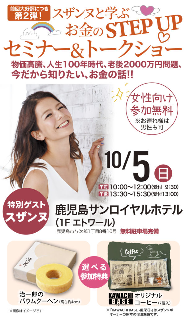 10/5(日) 鹿児島 スザンヌと学ぶお金のSTEP UPセミナー& トークショー