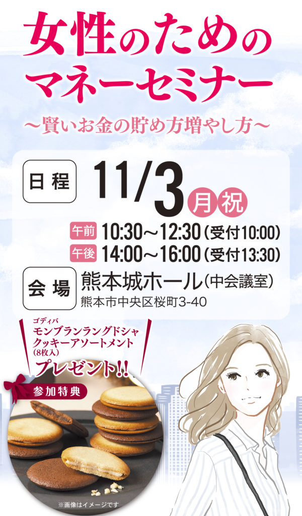 11/3(月祝) 熊本 女性のためのマネーセミナー 賢いお金の貯め方増やし方