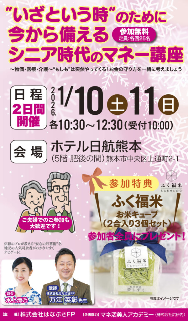 1/10(土)・11(日) 熊本 ”いざという時”のために 今から備える シニア時代のマネー講座