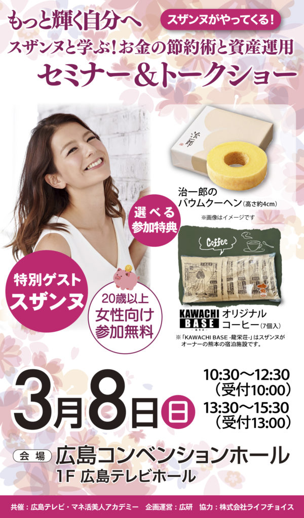 3/8(日) 広島 スザンヌと学ぶ!お金の節約術と資産運用セミナー& トークショー