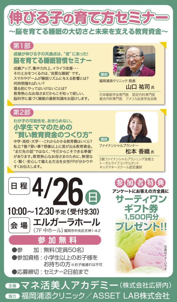 4/26(日) 福岡 伸びる子の育て方セミナー